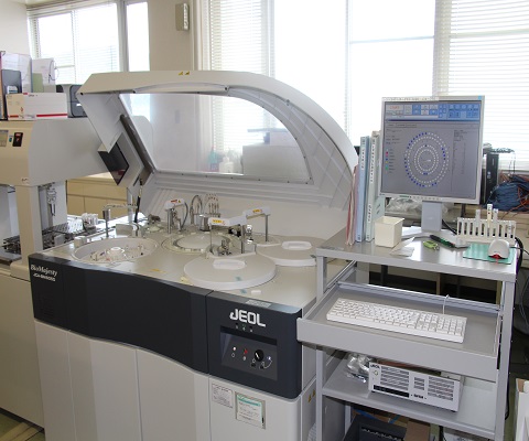 自動分析機、日本電子BM6050により患者様の血液から、肝臓、心臓、腎臓など各臓器の酸素や成分を分析し、異常値を見つけます。