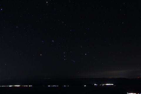 11月11日、風の強い夜、龍ヶ岳山頂でオリオン座をみてきました。風の強さで三脚ががたがた揺れる悪条件の中で写真もぶれ気味ですが、美しい星空と夜景の雰囲気でも感じてください。(S.K)