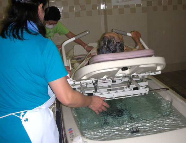 お湯をはった浴槽が下からあがってくるので、不安はありません。